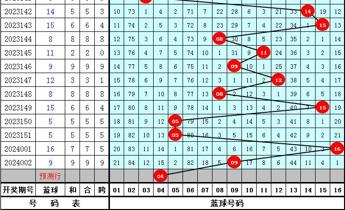 蓝球分析:上期蓝球为大号09,最近10期大号蓝球开出6次,小号蓝球开出4次,小号蓝球出现较少,本期注意回补,看好蓝球04。