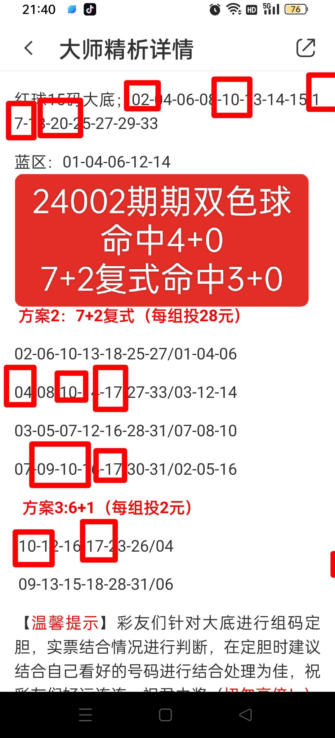 双色球24003期 大师精选分析-前命中6+0,002命中4+0