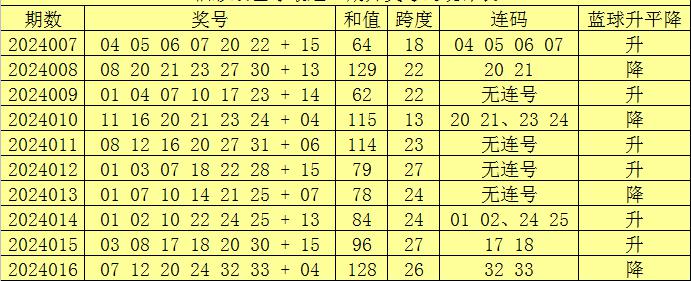 福彩双色球第2024016奖号开出:071220243233+04,红球号码和值为128,首尾间距为26,包含连号:3233。