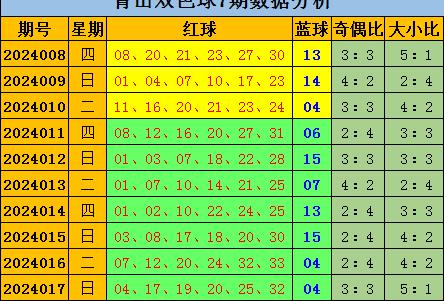 双色球第2024017期出奖号统计:红球041719202532,蓝球04,和值为117,跨度28,龙头04凤尾32,三区比为1:3:2,012路比为0:3:3,奇偶比为3:3,大小比为5:1,冷热比为2:4,2枚重号,1组连号。