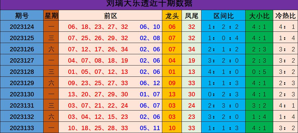 刘瑞大乐透本期推荐:乐透15+5大复式参考:061011121417192123272829303135+0304080912大乐透8+3小复式参考:1112192328293035+030809大乐透5+2参考:1112282935+0809