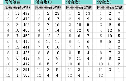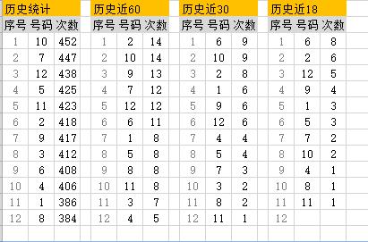 上面两张表中近期较热的号码有02、06、10,对应的遗漏值分别为:2、5、1,上期开出两个大偶数,本期可以重点关注一下中间码,奇偶搭配