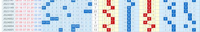 参照上图,上期开出05、08,奇偶开出,近期内,奇偶组合出号和偶奇组合出号占据热度,上期开出奇偶组合,预测正确,参照往期的后区组合搭配来看,本期考虑奇偶组合落重出号可能性较大,主要关注奇偶,小防偶奇再次回补;