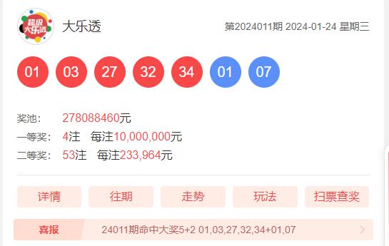 小师妹精选大乐透第24012期开奖号码