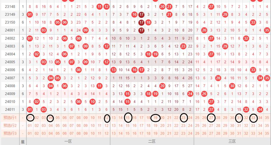 单从这组数据分析,师妹预感在一区和三区还是开出2个号来,蓝球的开奖号可能会开出一大一小两个号来要么就是开出两个中间号,我们再来看看红号三个区的走势: