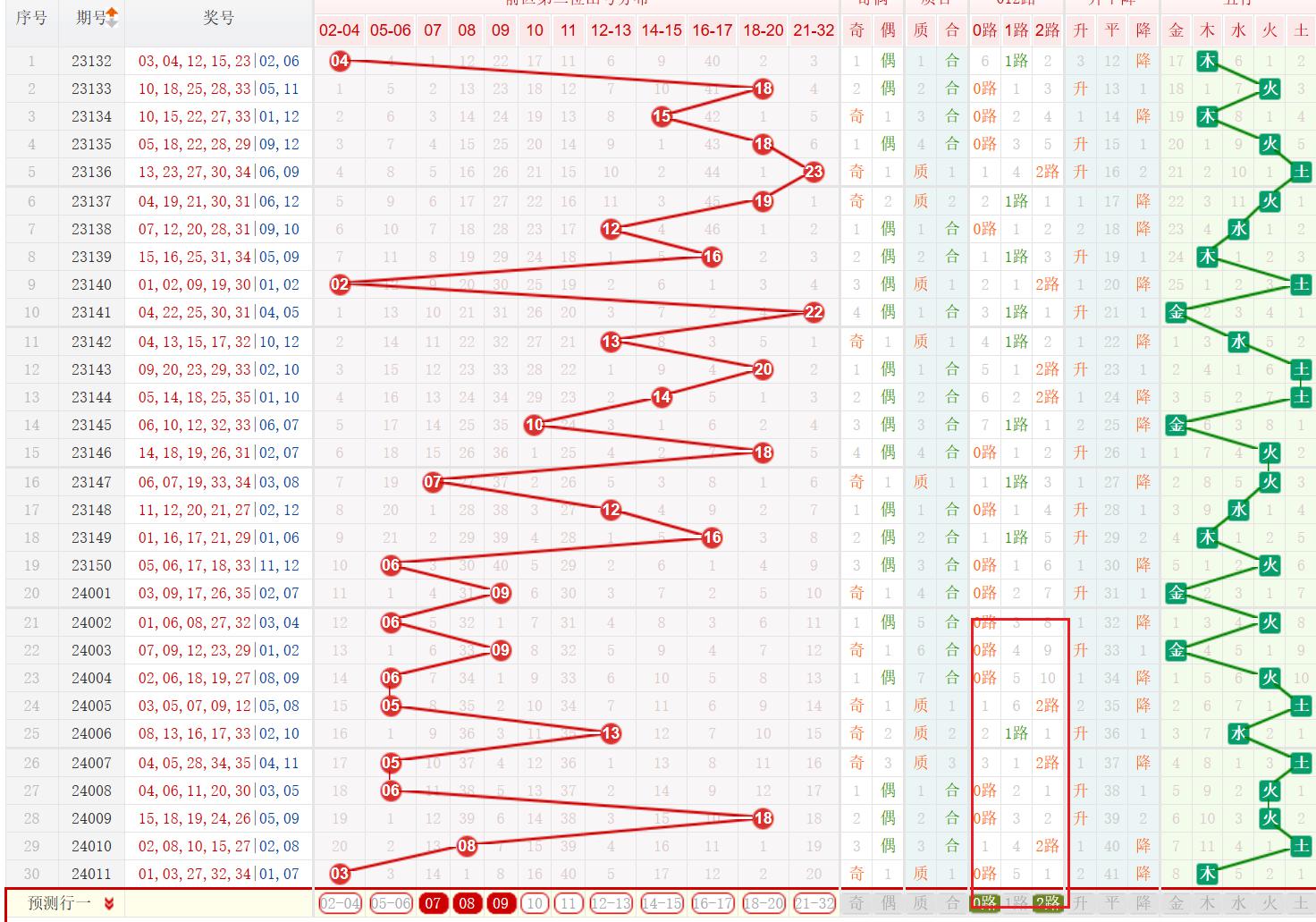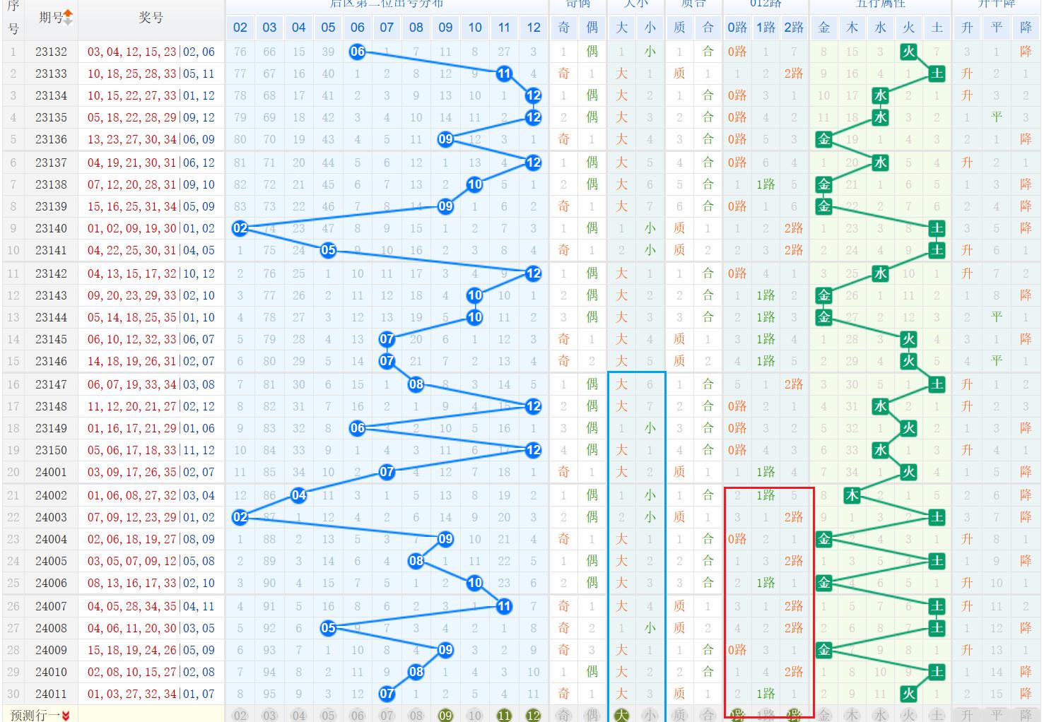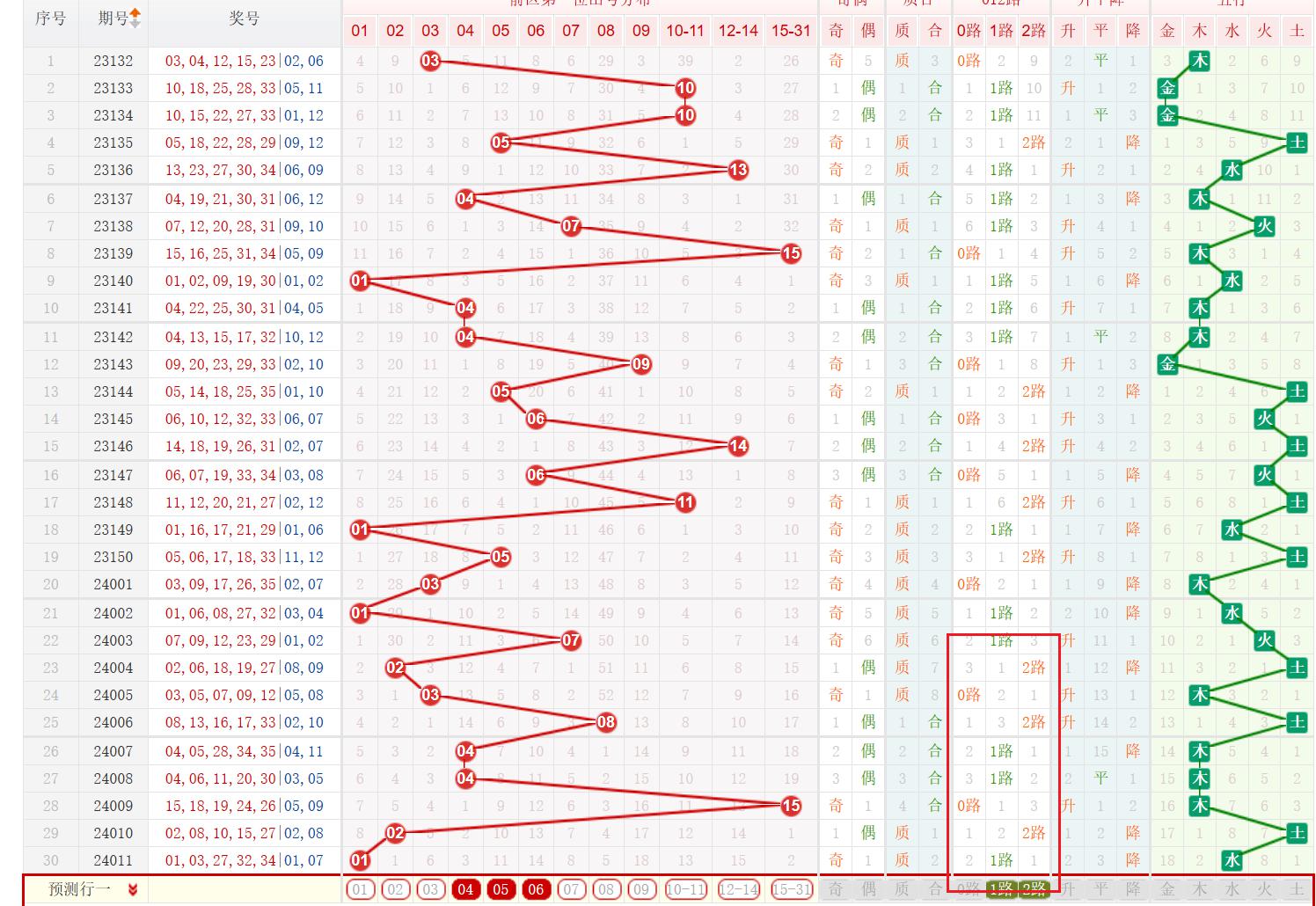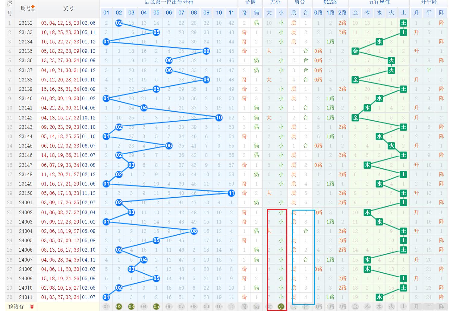 上一期后区第1 位开出号码为01,为奇数、小数、质数、1路号码。