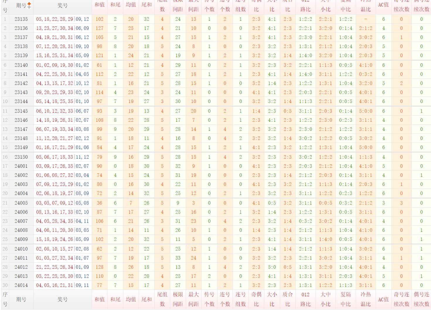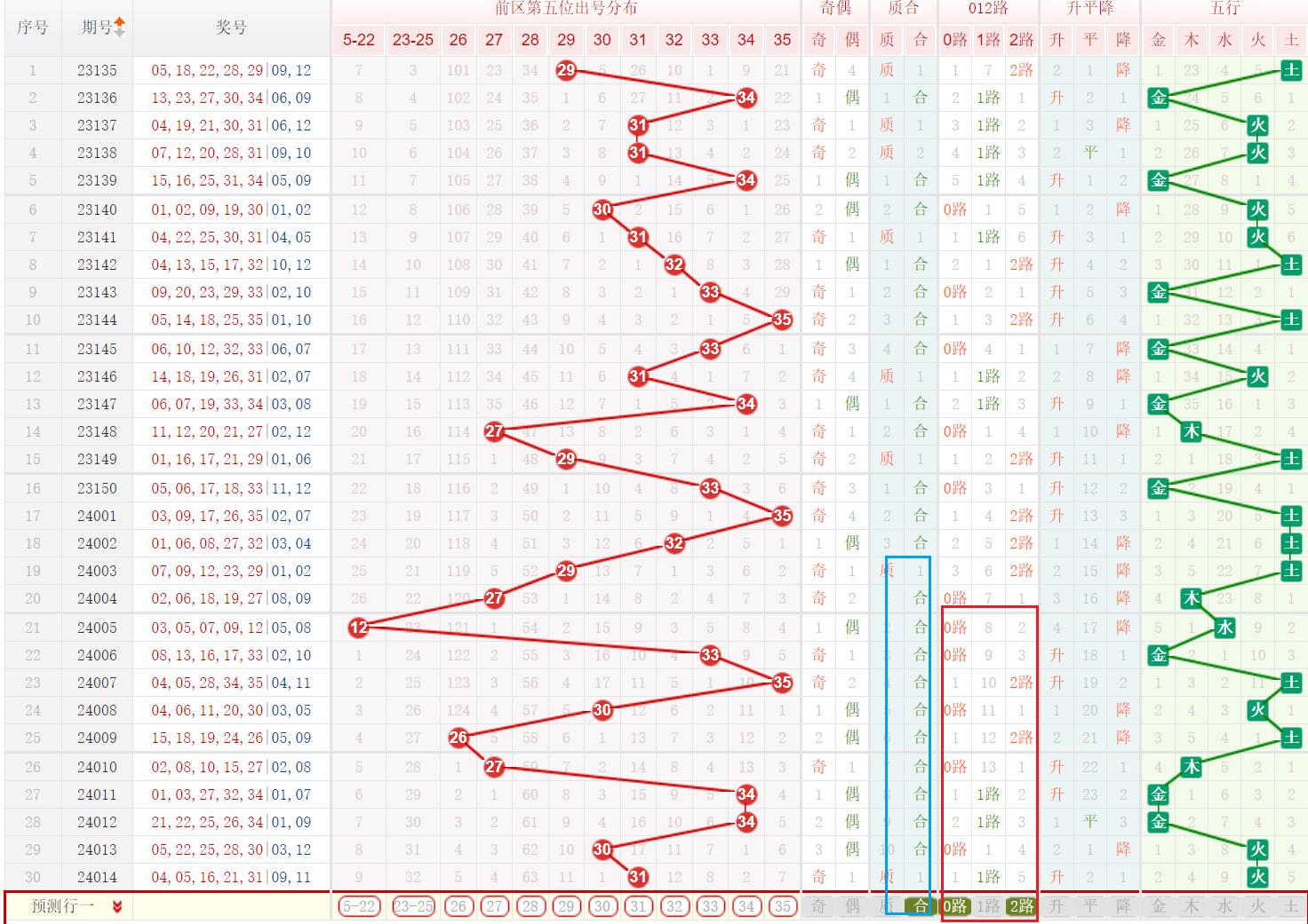 从第5位出号分布图可以看出,第5位出号在24-35之间比较常见,上一期开出号码31,为奇数、质数、1路号码。