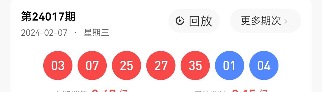 >大乐透2024017期开奖结果: