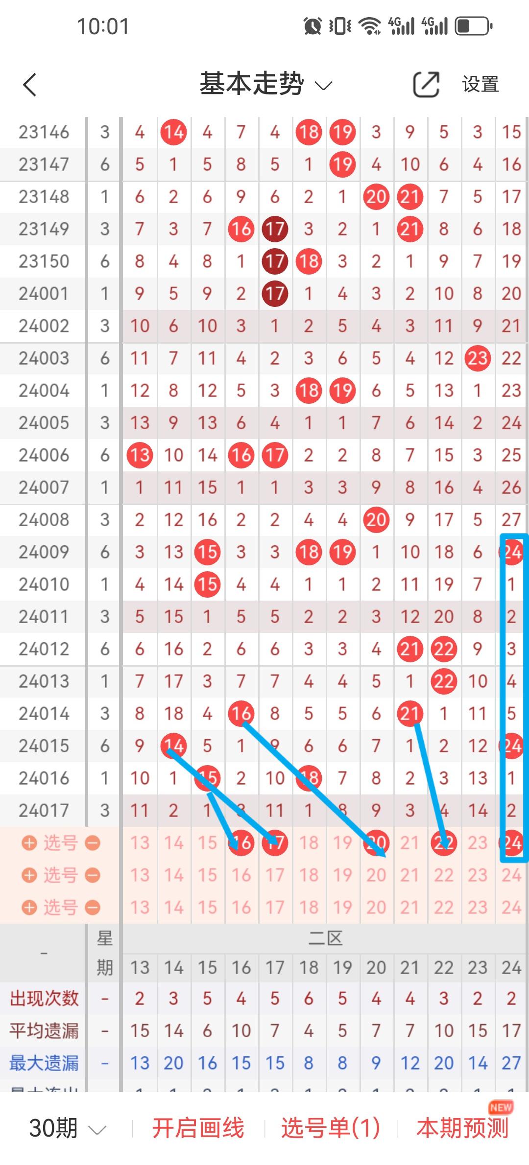 >015期当前区段出了14冷号24热号