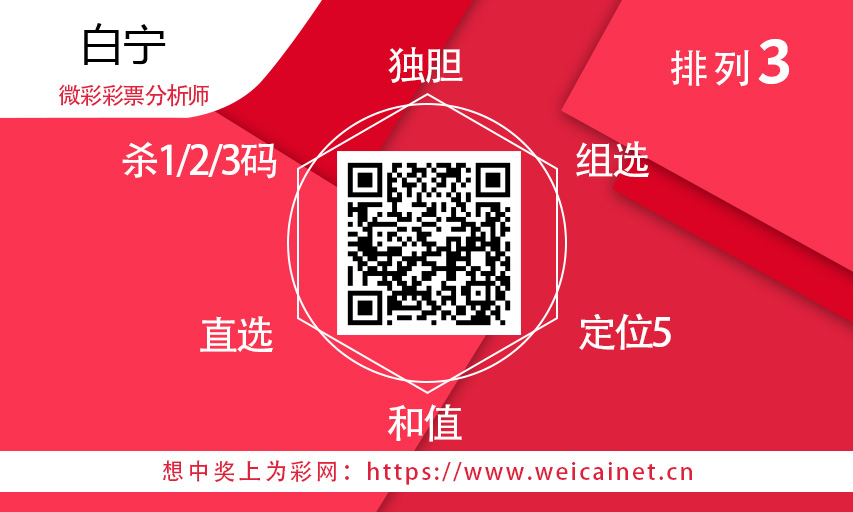 获取老师更多分析信息,请扫下方二维码 白宁 获取老师更多分析信息,请扫下方二维码 【重磅来袭】 关注公众号“为采推荐”一手分析信息在手,中奖不愁! 根据图片提示进入“微彩点播厅”另有意想不到的结果,赶紧大胆来尝试下! 文章来源:微彩点播厅 文章编辑:射手座 声明:以上观点属于个人分析,请大家理性参考!