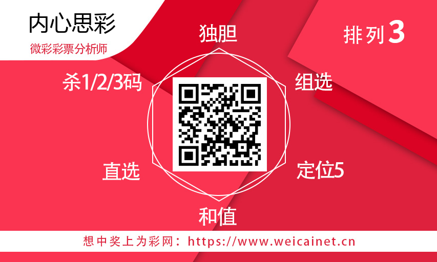 获取老师更多分析信息,请扫下方二维码 内心思彩 获取老师更多分析信息,请扫下方二维码 【重磅来袭】 关注公众号“为采推荐”一手分析信息在手,中奖不愁! 根据图片提示进入“微彩点播厅”另有意想不到的结果,赶紧大胆来尝试下! 文章来源:微彩点播厅 文章编辑:射手座 声明:以上观点属于个人分析,请大家理性参考!