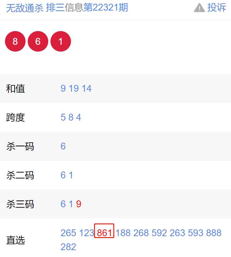 排列三上期开奖号码:861【更多体育彩票开奖链接:https://www.weicainet.cn/】