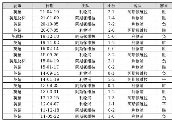 利物浦 VS 阿斯顿维拉两队近10年的交战次数为18场,利物浦10胜2平6负,赢球概率为55.6%,平局概率为11.1%,输球概率为33.3%。