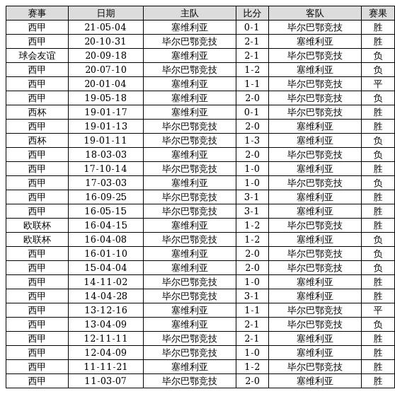 毕尔巴鄂竞技 VS 塞维利亚两队近10年的交战次数为26场,毕尔巴鄂竞技14胜2平10负,赢球概率为53.8%,平局概率为7.7%,输球概率为38.5%。