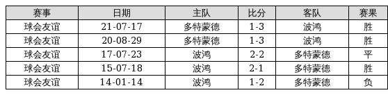 波鸿 VS 多特蒙德两队近10年的交战次数为5场,波鸿3胜1平1负,赢球概率为60%,平局概率为20%,输球概率为20%。