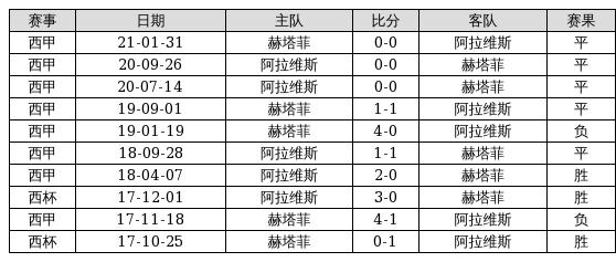 阿拉维斯 VS 赫塔菲两队近10年的交战次数为10场,阿拉维斯3胜5平2负,赢球概率为30%,平局概率为50%,输球概率为20%。
