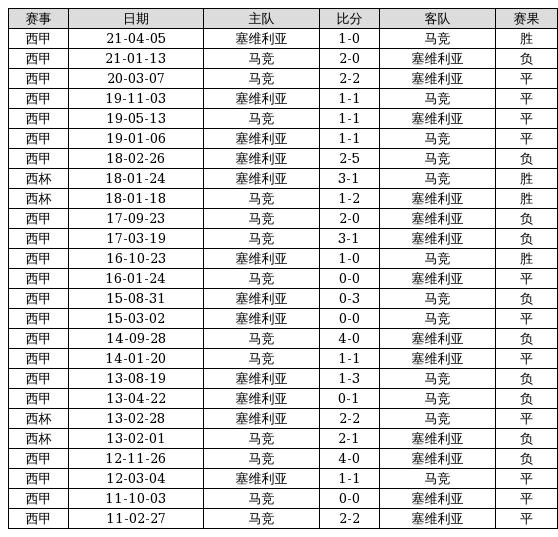 塞维利亚 VS 马竞两队近10年的交战次数为25场,塞维利亚4胜11平10负,赢球概率为16%,平局概率为44%,输球概率为40%。