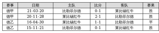 莱比锡红牛 VS 比勒菲尔德两队近10年的交战次数为4场,莱比锡红牛3胜1平0负,赢球概率为75%,平局概率为25%,输球概率为0%。