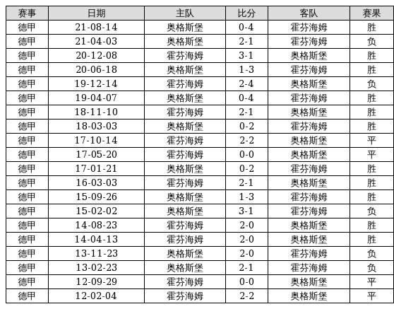 霍芬海姆 VS 奥格斯堡两队近10年的交战次数为20场,霍芬海姆11胜4平5负,赢球概率为55%,平局概率为20%,输球概率为25%。