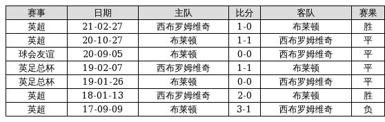 西布罗姆维奇 VS 布莱顿两队近10年的交战次数为7场,西布罗姆维奇2胜4平1负,赢球概率为28.6%,平局概率为57.1%,输球概率为14.3%。