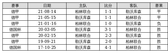 勒沃库森 VS 柏林联合两队近10年的交战次数为7场,勒沃库森4胜2平1负,赢球概率为57.1%,平局概率为28.6%,输球概率为14.3%。