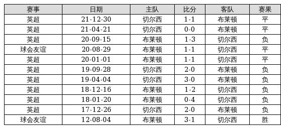 布莱顿 VS 切尔西两队近10年的交战次数为11场,布莱顿1胜4平6负,赢球概率为9.1%,平局概率为36.4%,输球概率为54.5%。