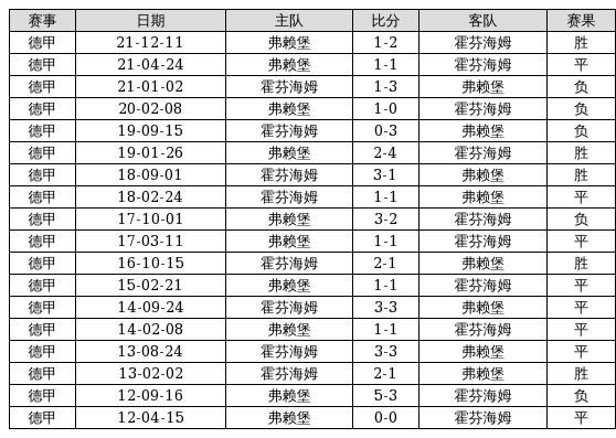 霍芬海姆 VS 弗赖堡两队近10年的交战次数为18场,霍芬海姆5胜8平5负,赢球概率为27.8%,平局概率为44.4%,输球概率为27.8%。