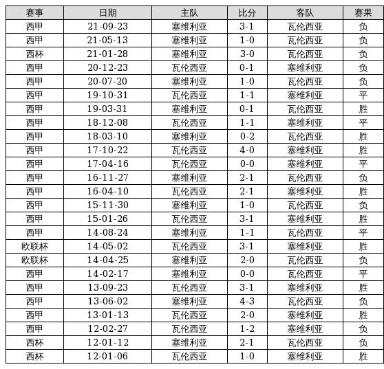 瓦伦西亚 VS 塞维利亚两队近10年的交战次数为25场,瓦伦西亚9胜5平11负,赢球概率为36%,平局概率为20%,输球概率为44%。