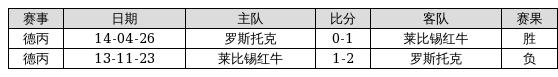 莱比锡红牛 VS 罗斯托克两队近10年的交战次数为2场,莱比锡红牛1胜0平1负,赢球概率为50%,平局概率为0%,输球概率为50%。