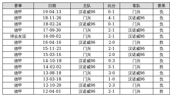汉诺威96 VS 门兴两队近10年的交战次数为14场,汉诺威963胜0平11负,赢球概率为21.4%,平局概率为0%,输球概率为78.6%。