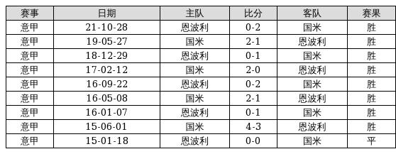 国米 VS 恩波利两队近10年的交战次数为9场,国米8胜1平0负,赢球概率为88.9%,平局概率为11.1%,输球概率为0%。
