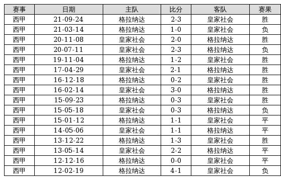 皇家社会 VS 格拉纳达两队近10年的交战次数为16场,皇家社会8胜4平4负,赢球概率为50%,平局概率为25%,输球概率为25%。