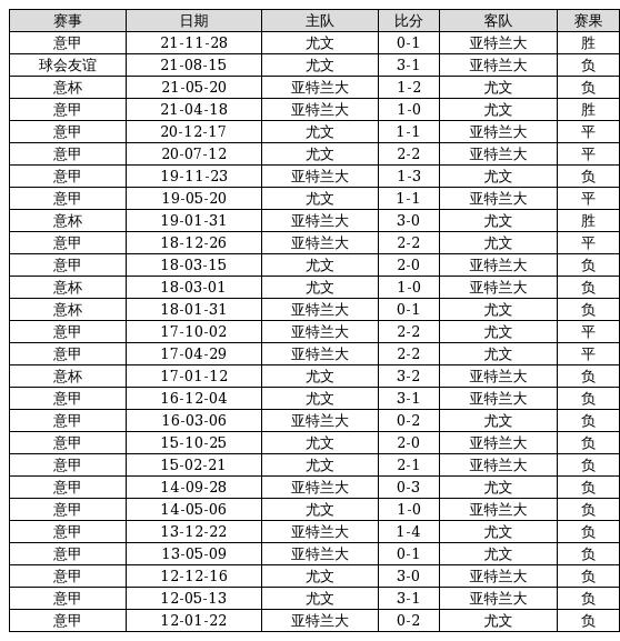 亚特兰大 VS 尤文两队近10年的交战次数为27场,亚特兰大3胜6平18负,赢球概率为11.1%,平局概率为22.2%,输球概率为66.7%。