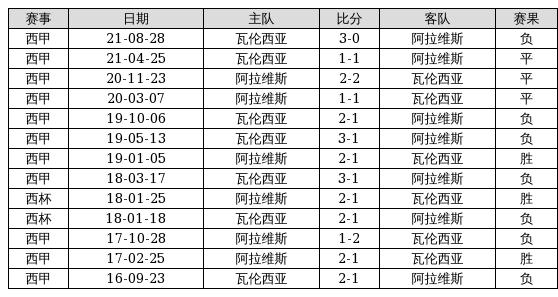 阿拉维斯 VS 瓦伦西亚两队近10年的交战次数为13场,阿拉维斯3胜3平7负,赢球概率为23.1%,平局概率为23.1%,输球概率为53.8%。