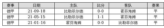 霍芬海姆 VS 比勒菲尔德两队近10年的交战次数为3场,霍芬海姆0胜3平0负,赢球概率为0%,平局概率为100%,输球概率为0%。