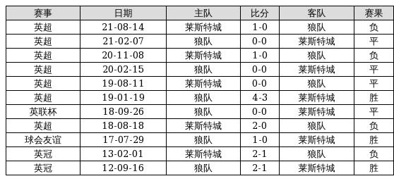 狼队 VS 莱斯特城两队近10年的交战次数为11场,狼队3胜4平4负,赢球概率为27.3%,平局概率为36.4%,输球概率为36.4%。