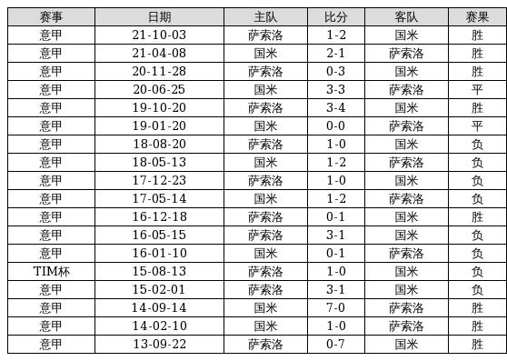 国米 VS 萨索洛两队近10年的交战次数为18场,国米8胜2平8负,赢球概率为44.4%,平局概率为11.1%,输球概率为44.4%。
