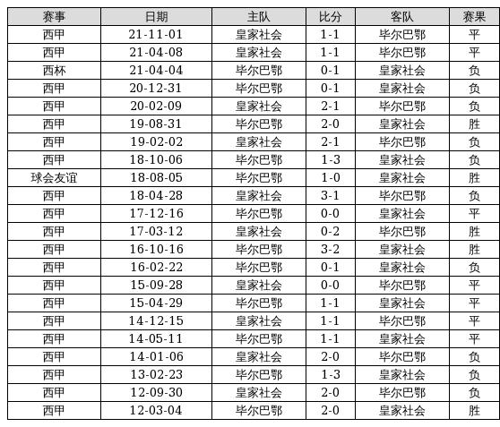 毕尔巴鄂 VS 皇家社会两队近10年的交战次数为22场,毕尔巴鄂5胜7平10负,赢球概率为22.7%,平局概率为31.8%,输球概率为45.5%。