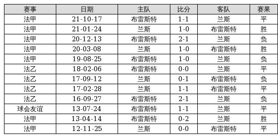 兰斯 VS 布雷斯特两队近10年的交战次数为12场,兰斯3胜5平4负,赢球概率为25%,平局概率为41.7%,输球概率为33.3%。