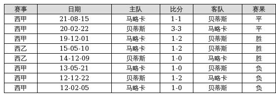 贝蒂斯 VS 马略卡两队近10年的交战次数为8场,贝蒂斯3胜2平3负,赢球概率为37.5%,平局概率为25%,输球概率为37.5%。