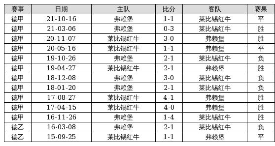 莱比锡红牛 VS 弗赖堡两队近10年的交战次数为13场,莱比锡红牛6胜3平4负,赢球概率为46.2%,平局概率为23.1%,输球概率为30.8%。