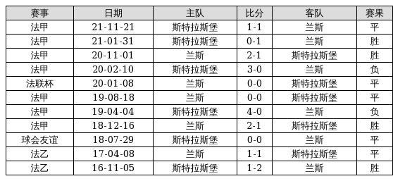 兰斯 VS 斯特拉斯堡两队近10年的交战次数为11场,兰斯4胜5平2负,赢球概率为36.4%,平局概率为45.5%,输球概率为18.2%。