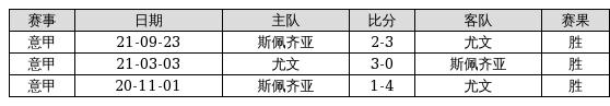 尤文 VS 斯佩齐亚两队近10年的交战次数为3场,尤文3胜0平0负,赢球概率为100%,平局概率为0%,输球概率为0%。