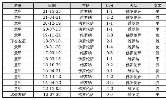 佛罗伦萨 VS 维罗纳两队近10年的交战次数为15场,佛罗伦萨7胜5平3负,赢球概率为46.7%,平局概率为33.3%,输球概率为20%。