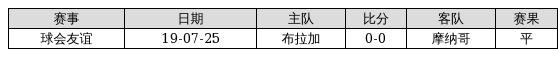 布拉加 VS 摩纳哥两队近10年的交战次数为1场,布拉加0胜1平0负,赢球概率为0%,平局概率为100%,输球概率为0%。