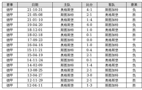 斯图加特 VS 奥格斯堡两队近10年的交战次数为16场,斯图加特6胜1平9负,赢球概率为37.5%,平局概率为6.3%,输球概率为56.3%。
