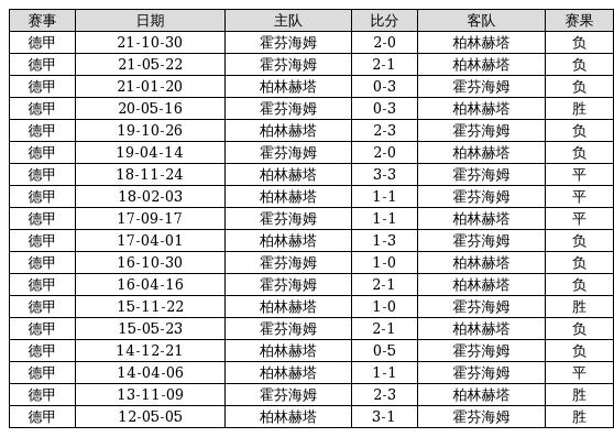 柏林赫塔 VS 霍芬海姆两队近10年的交战次数为18场,柏林赫塔4胜4平10负,赢球概率为22.2%,平局概率为22.2%,输球概率为55.6%。