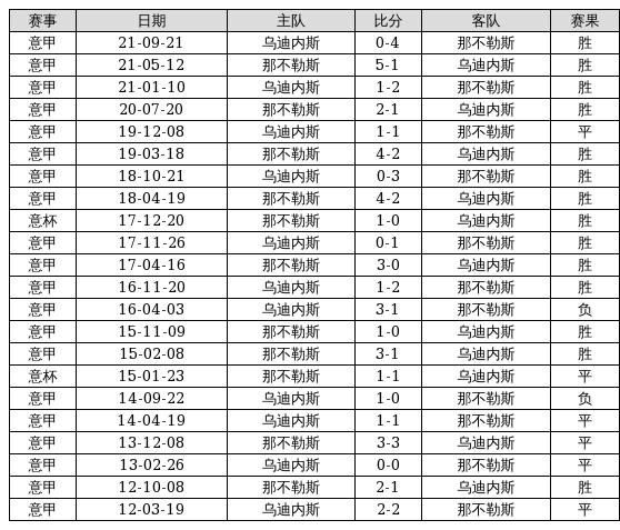 那不勒斯 VS 乌迪内斯两队近10年的交战次数为22场,那不勒斯14胜6平2负,赢球概率为63.6%,平局概率为27.3%,输球概率为9.1%。