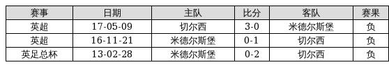 米德尔斯堡 VS 切尔西两队近10年的交战次数为3场,米德尔斯堡0胜0平3负,赢球概率为0%,平局概率为0%,输球概率为100%。