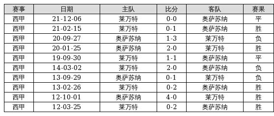 奥萨苏纳 VS 莱万特两队近10年的交战次数为10场,奥萨苏纳5胜2平3负,赢球概率为50%,平局概率为20%,输球概率为30%。